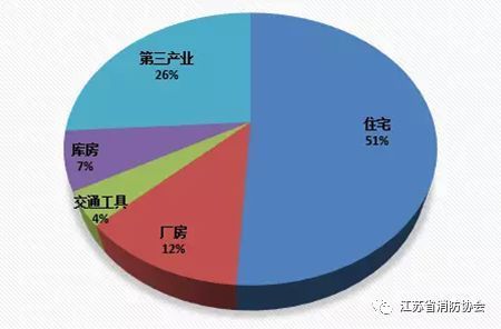 從近五年電氣火災發(fā)生的主要場所來看,場所類型及其占比分別為: