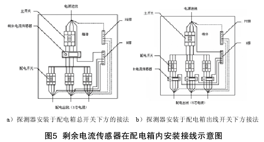 ?。?)配電箱中安裝剩余電流感器時,一次線路按圖5所示連接。