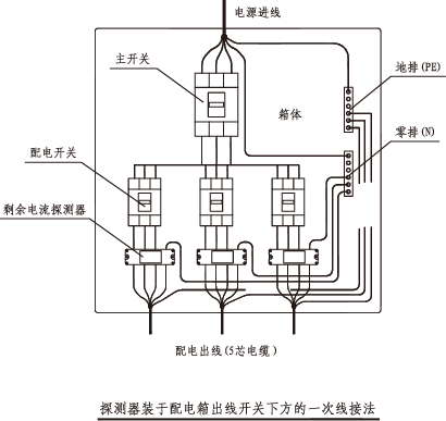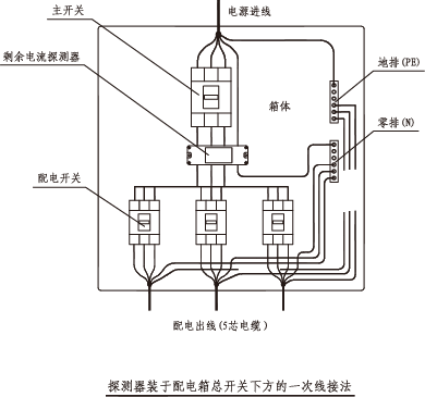獨立探測被保護線路中的剩余電流值變化并發(fā)出聲、光報警信號的探測器。