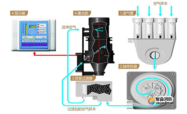 而主動式探測的感煙探測器是利用抽氣泵主動將空氣吸進去進行煙霧濃度檢測。