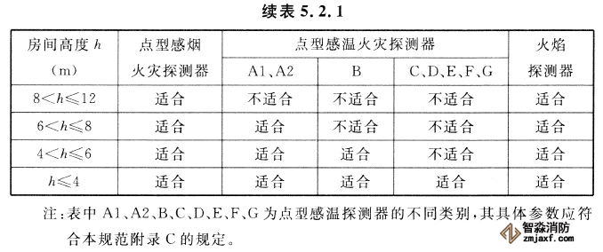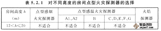 5.2.1 對不同高度的房間,可按表5.2. 1 選擇點型火災(zāi)探測器。