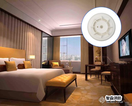 在每個房間設置感煙探測器,感煙探測器的數量計算參照《火災自動報警系統(tǒng)設計規(guī)范》,一個感煙探測器的最大保護面積可以達到80平方米。走道電梯前室等地也應布置感煙探測器。探測器的布置原則應滿足在寬度小于3m的內走道頂棚上設置探測器時,宜居中布置。感煙探測器的安裝間距不應超過15m;探測器至端墻的距離,不應大于探測器安裝間距的一半。