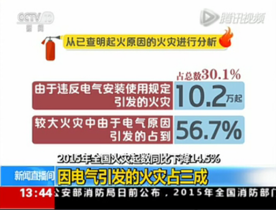 2015年全國火災(zāi)統(tǒng)計數(shù)據(jù)出爐,電氣火災(zāi)占三成