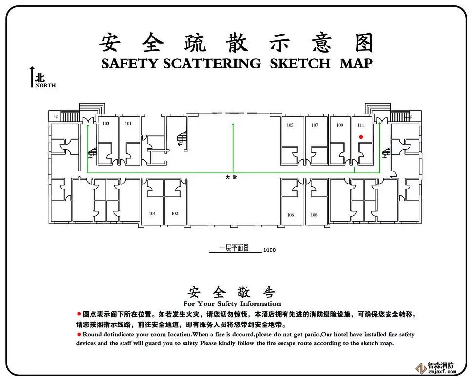在建工程施工期間,一般可視條件較差,因此作業(yè)層的醒目位置應(yīng)設(shè)置安全疏散示意圖。